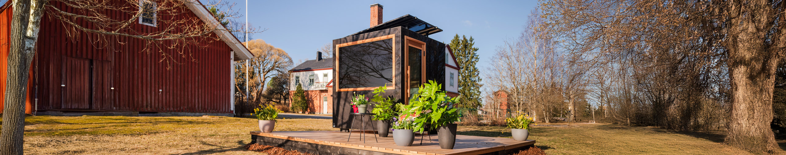 La collection Kirami FinVision® -sauna Zero vous invite à vous détendre de façon écoénergétique, même dans les plus petits jardins et chalets.